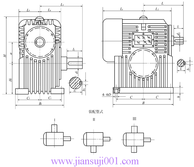(3)PWS型—蝸桿在蝸輪之側平面二次包絡環面蝸桿減速器。