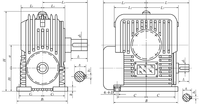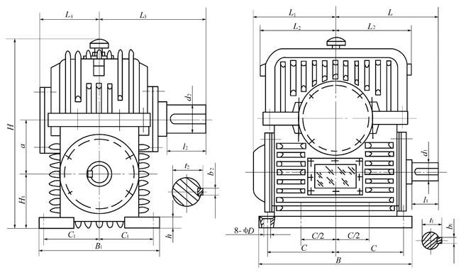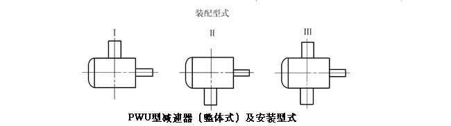 (1) PWU型—蝸桿在蝸輪之下平面二次包絡環面蝸桿減速機; (2) PWO型—蝸桿在蝸輪之上平面二次包絡環面蝸桿減速機; (3) PWS型—蝸桿在蝸輪之側平面二次