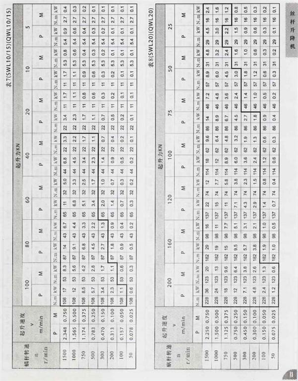SWL10-SWL20絲桿升降機配套功率