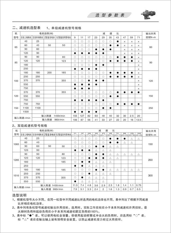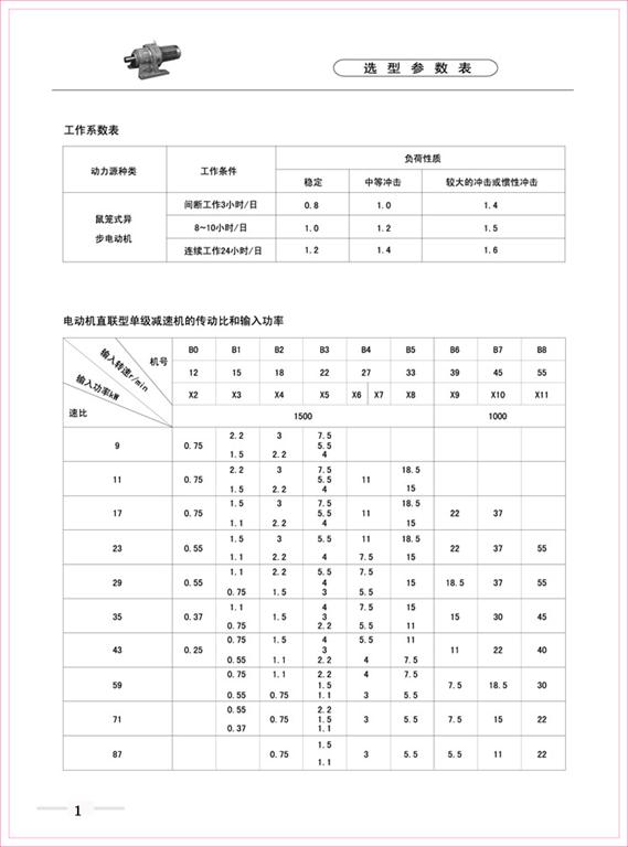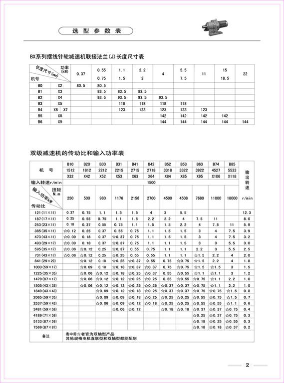B、X系列擺線(xiàn)針輪減速機(jī)選型參數(shù)表