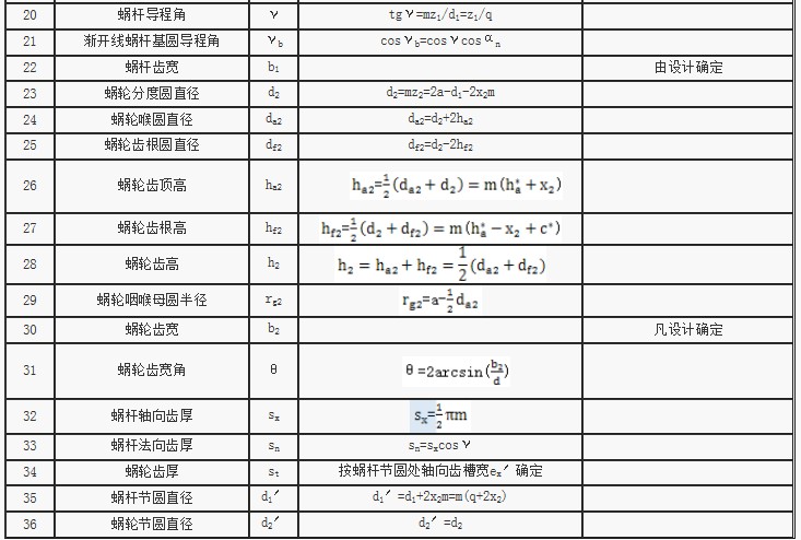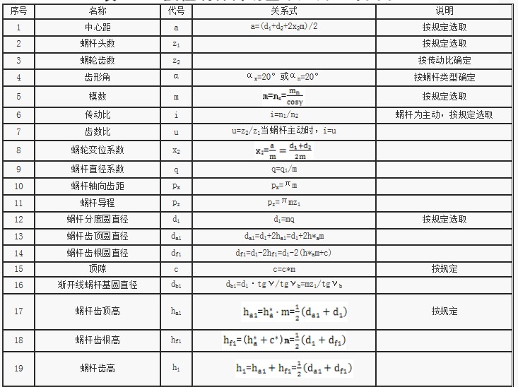 標準蝸輪蝸桿幾何參數關系公式