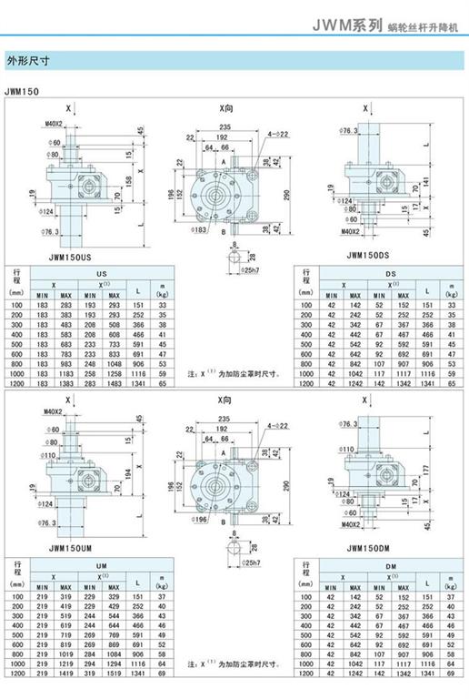減速機(jī)|蝸輪絲桿升降機(jī)-JWM升降機(jī)150外形尺寸圖-海洋傳動(dòng)