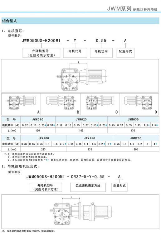 JWM升降機(jī)與電機(jī)直聯(lián)型號(hào)表示及與減速電機(jī)組合式
