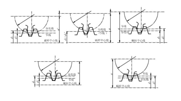 蝸輪蝸桿傳動中變位蝸桿傳動根據使用場合的不同,可在下述兩種變位方式中選取一種。 1)變位前后,蝸輪的齒數不變(z2 '=z2),蝸桿傳動的中心距改變(a '≠a),如圖9-8a、c所示,其中心距的計算式如下: