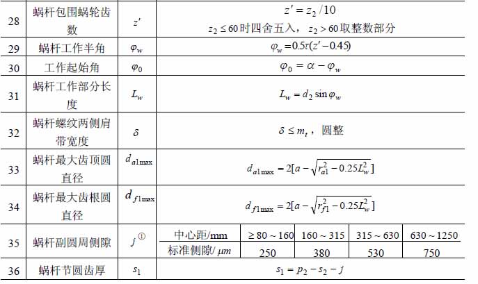 平面二次包絡環面蝸桿參數計算公式: