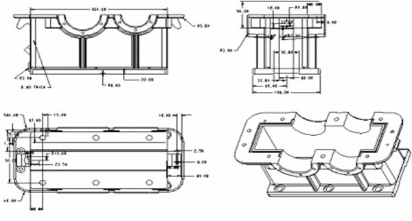 (3)    增加三維視圖。第一步順序點按DRAWING(繪圖)子菜單項Views(視圖)Add view(增加視圖)|General(一般)|Full View(全視圖)|No Xsec(無剖面)|Scale(比例)|Done(完成);第二步在圖面右下角三維視圖的位置點按左鍵;第三步輸入圖形比例,零件的三維試圖將會出現(xiàn),系統(tǒng)形成了零件的三維視圖。